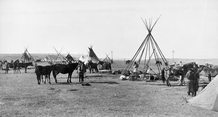 Передвижной лагерь племени Сарси около Калгари, 1887 г.