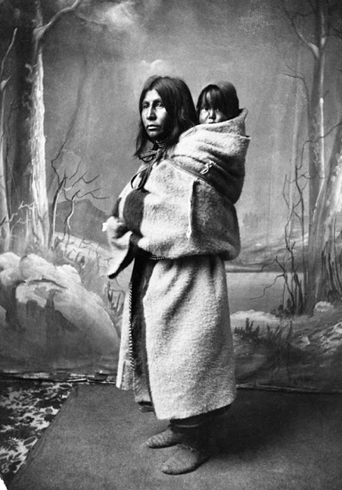 Женщина из племени Блэкфутов с ребенком за спиной, 1886 г.
